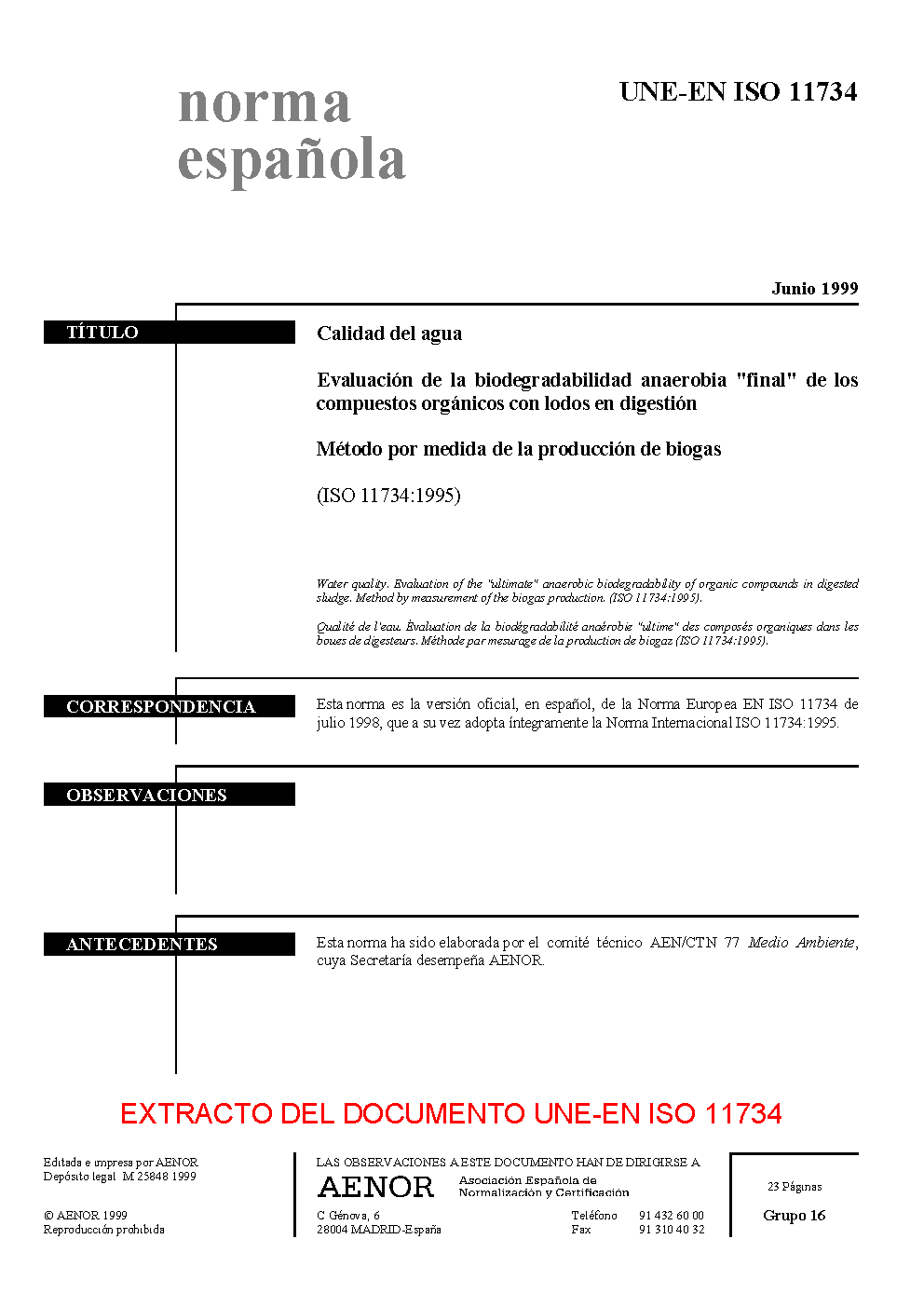 | Publisher | Asociacion Espanola de Normalizacion y Certificacion (AENOR) |