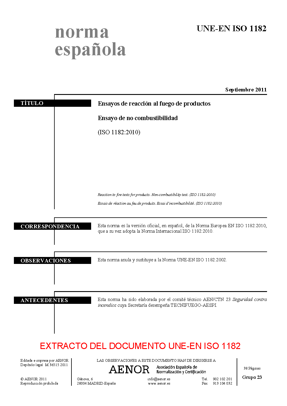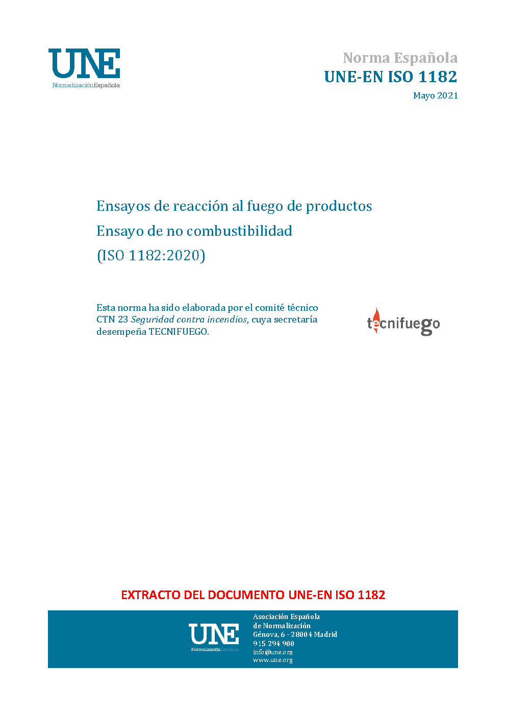 Reaction to fire tests for building products - Non-combustibility test. (ISO 1182:2002)