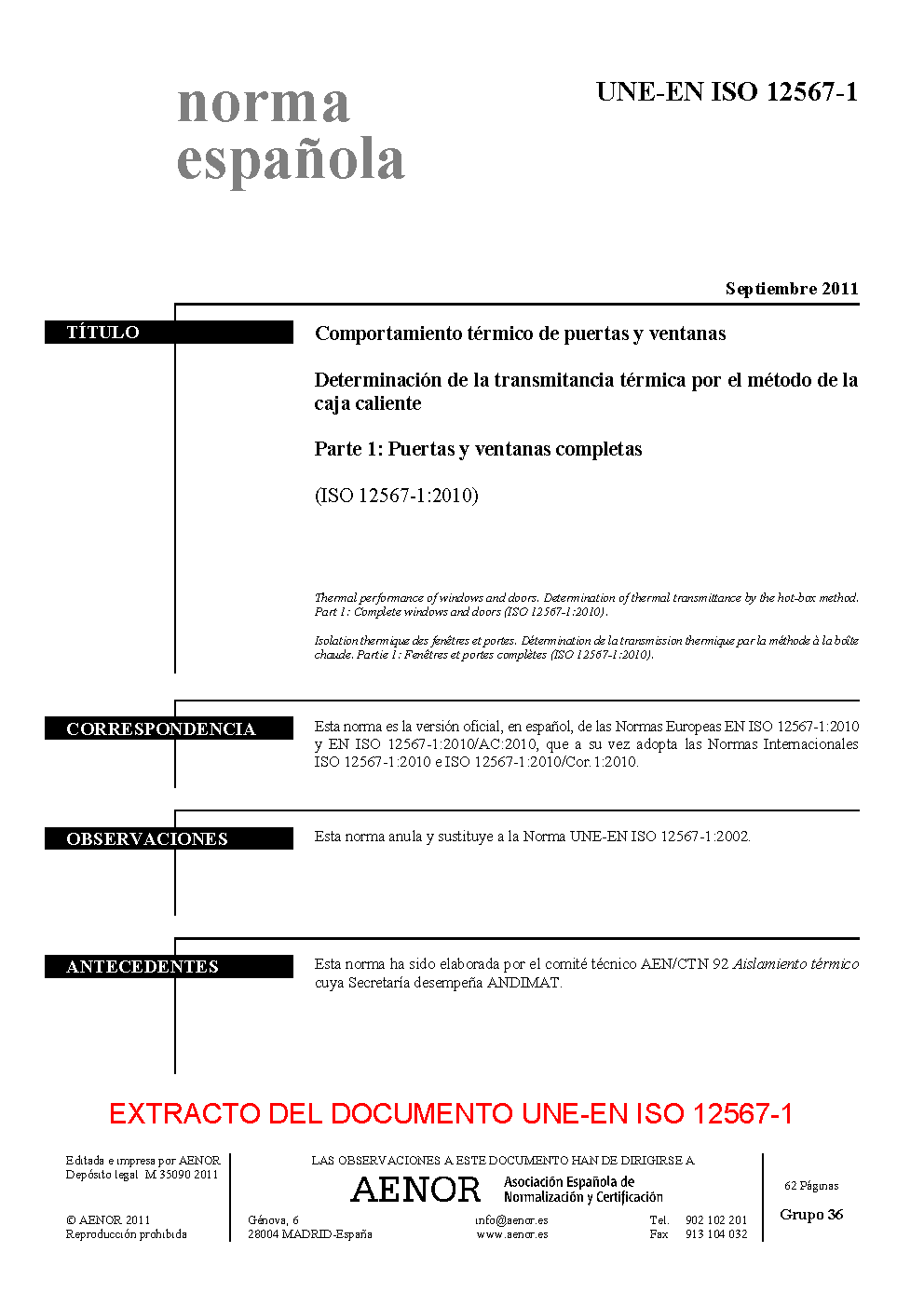 | Publisher | Asociacion Espanola de Normalizacion y Certificacion (AENOR) |