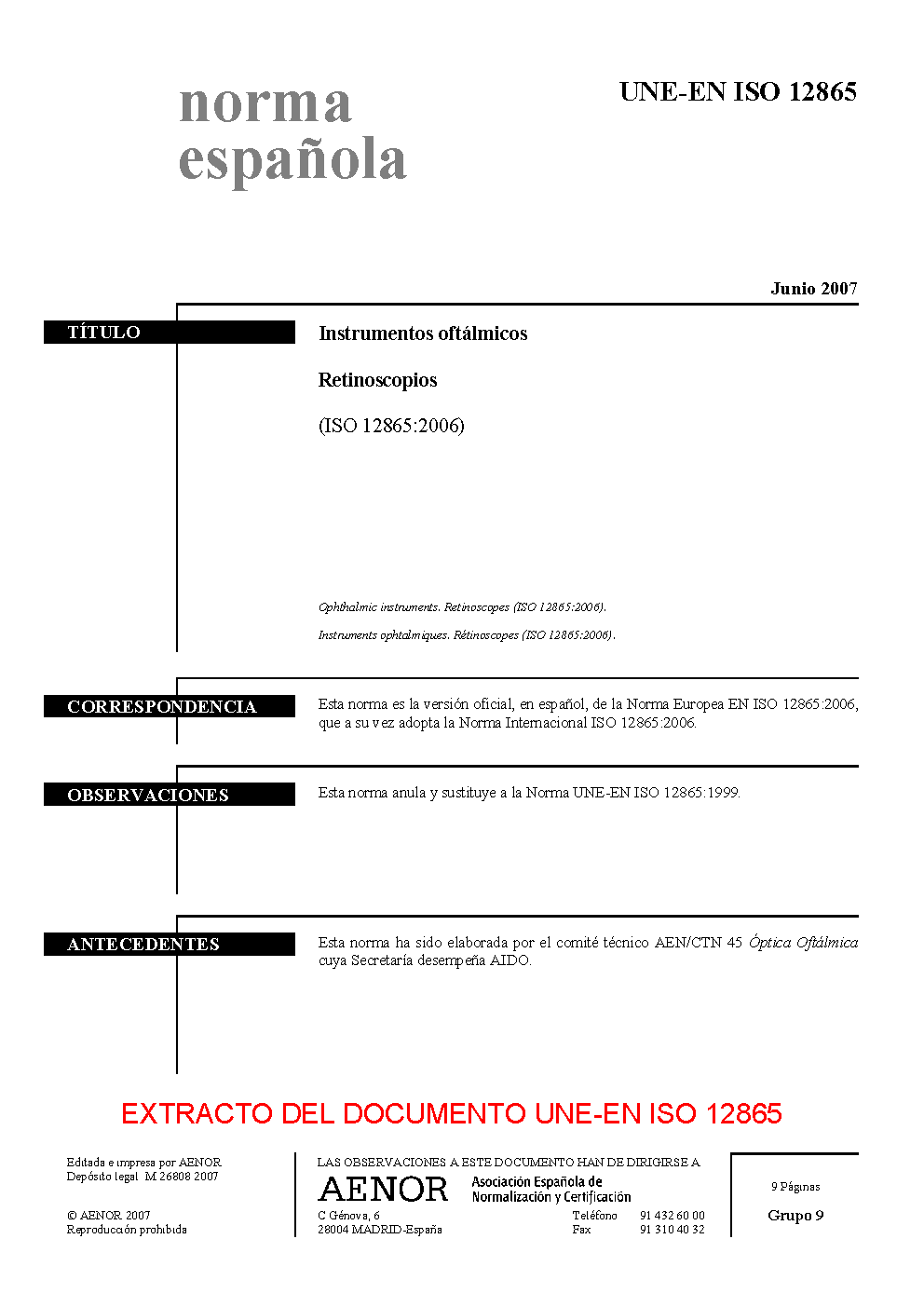 | Publisher | Asociacion Espanola de Normalizacion y Certificacion (AENOR) |