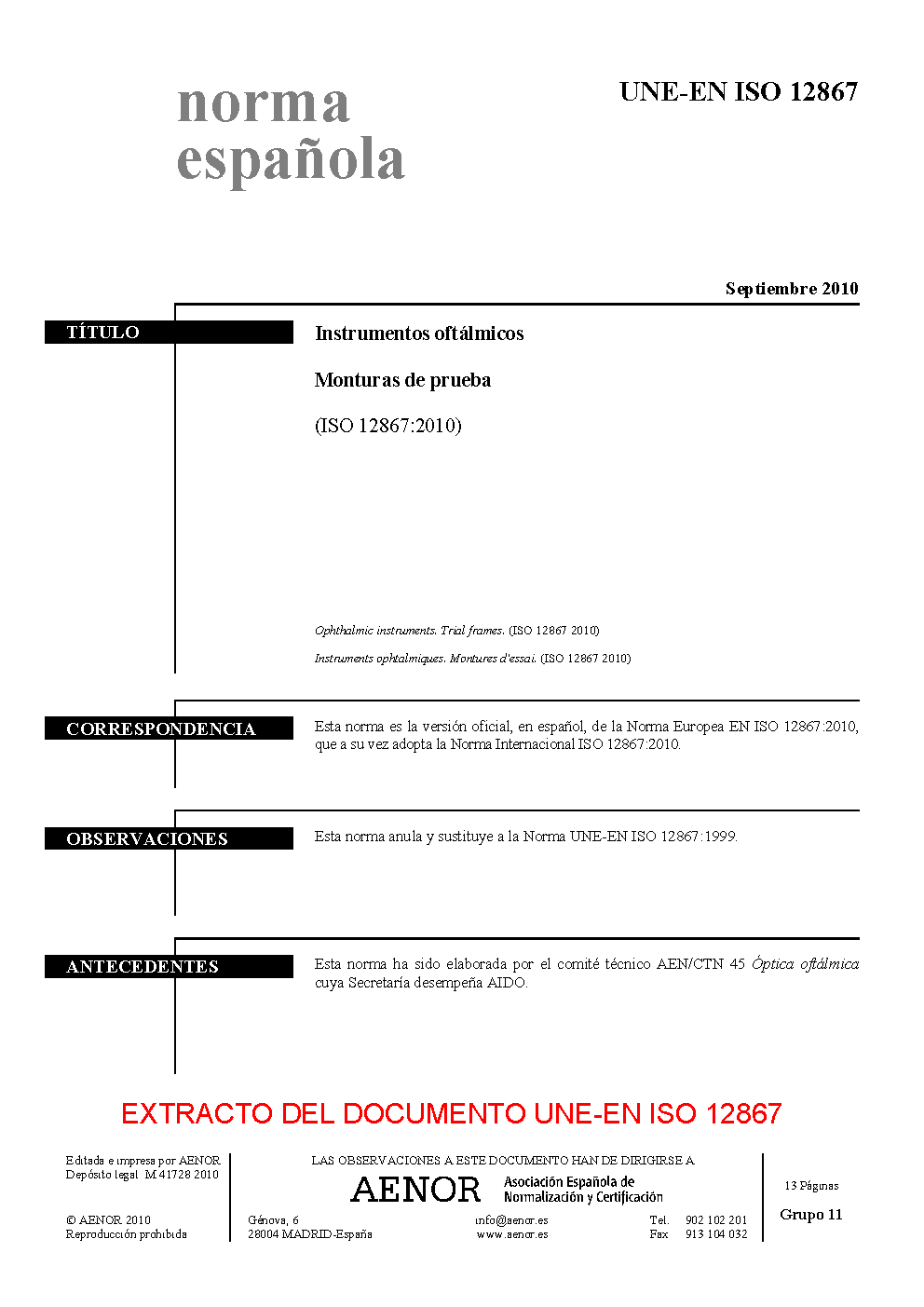 Ophthalmic instruments - Trial frames (ISO 12867:2010)