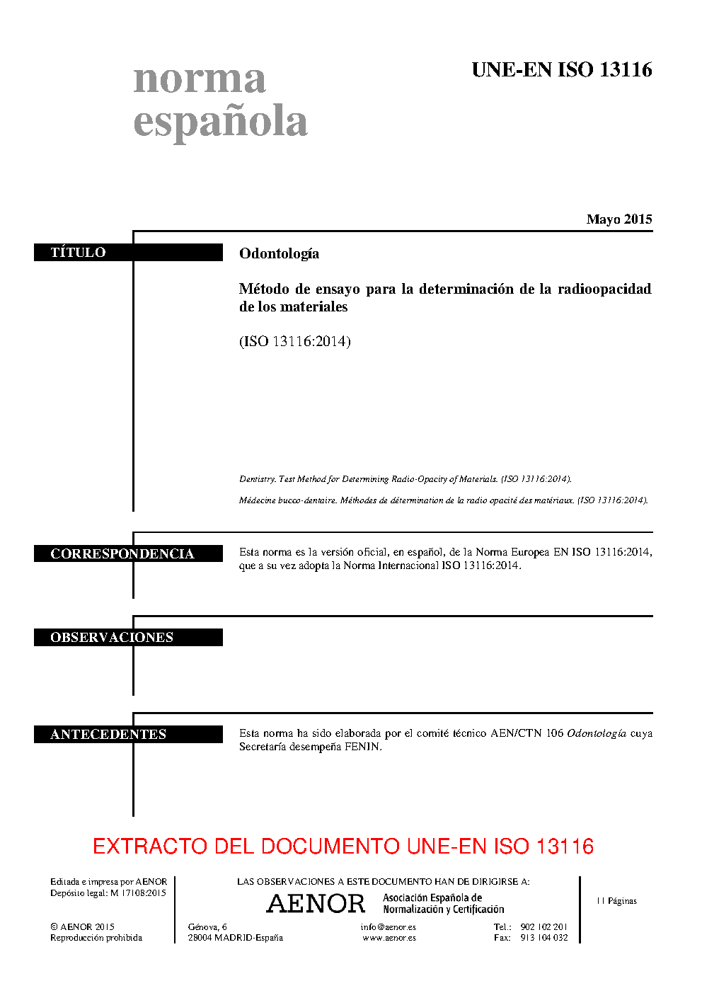 | Publisher | Asociacion Espanola de Normalizacion y Certificacion (AENOR) |