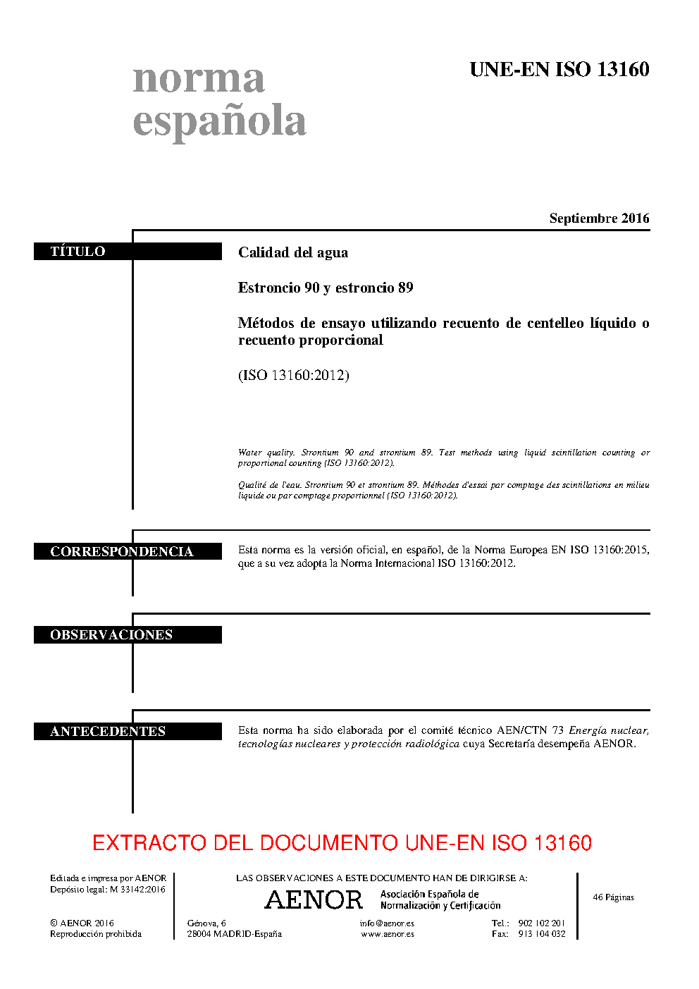 | Publisher | Asociacion Espanola de Normalizacion y Certificacion (AENOR) |