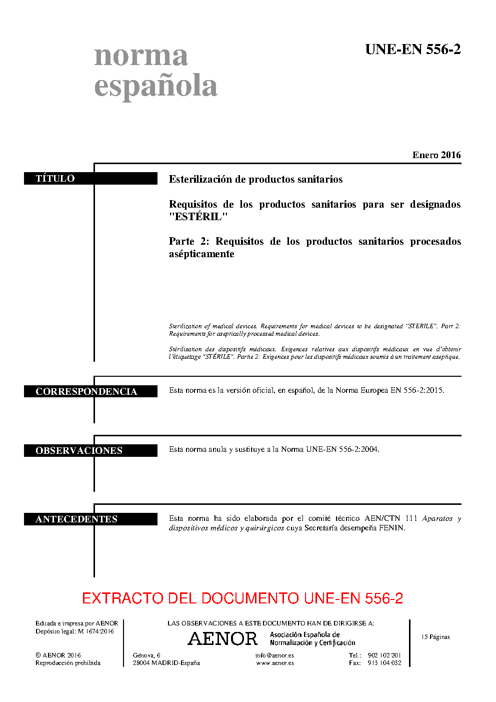 | Publisher | Asociacion Espanola de Normalizacion y Certificacion (AENOR) |