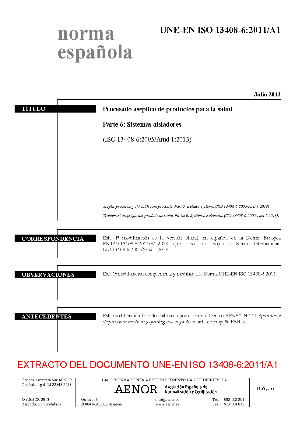 | Publisher | Asociacion Espanola de Normalizacion y Certificacion (AENOR) |