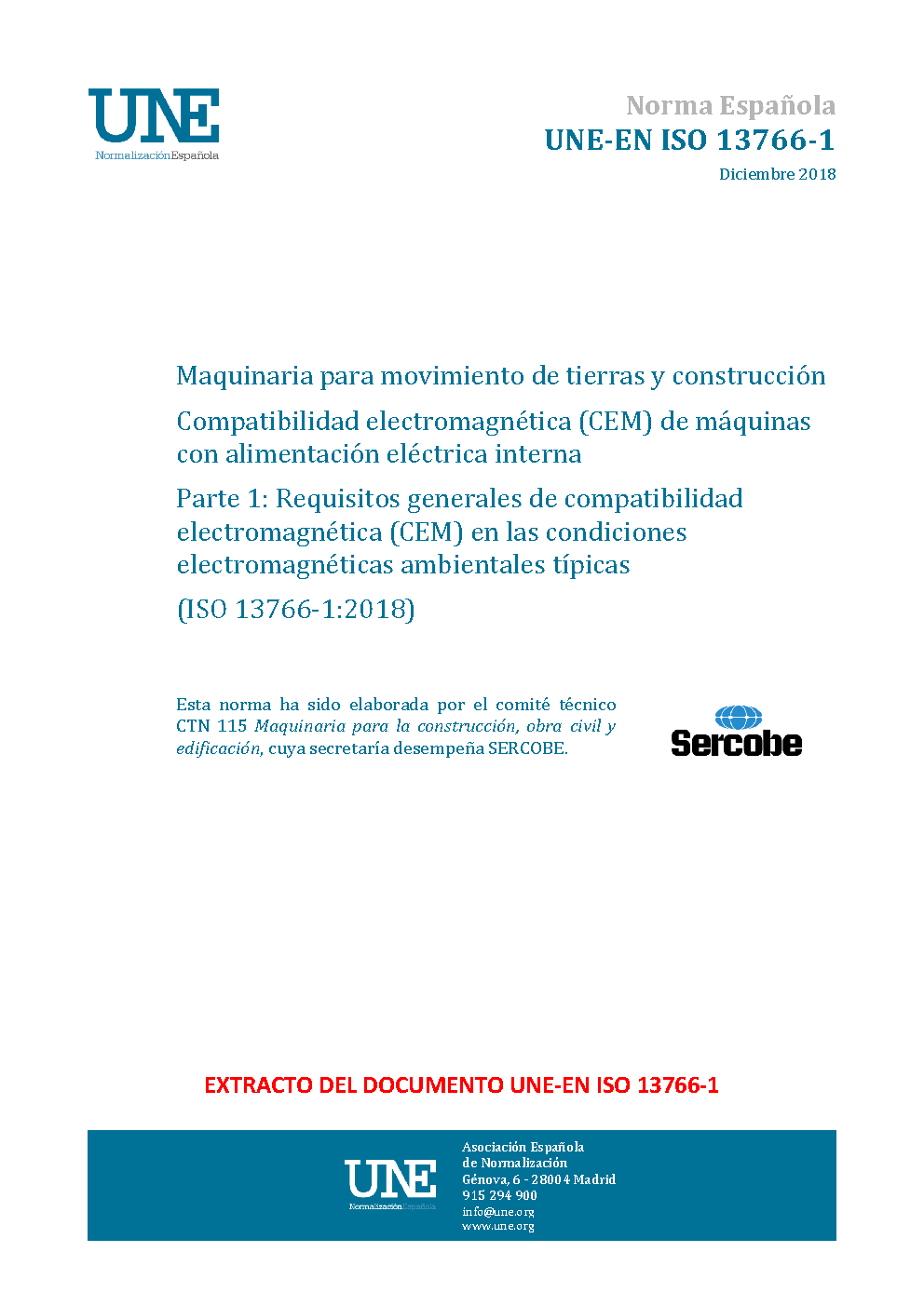 Earth-moving and building construction machinery - Electromagnetic compatibility (EMC) of machines with internal electrical power supply - Part 1: General EMC requirements under typical electromagnetic environmental conditions (ISO 13766-1:2018)