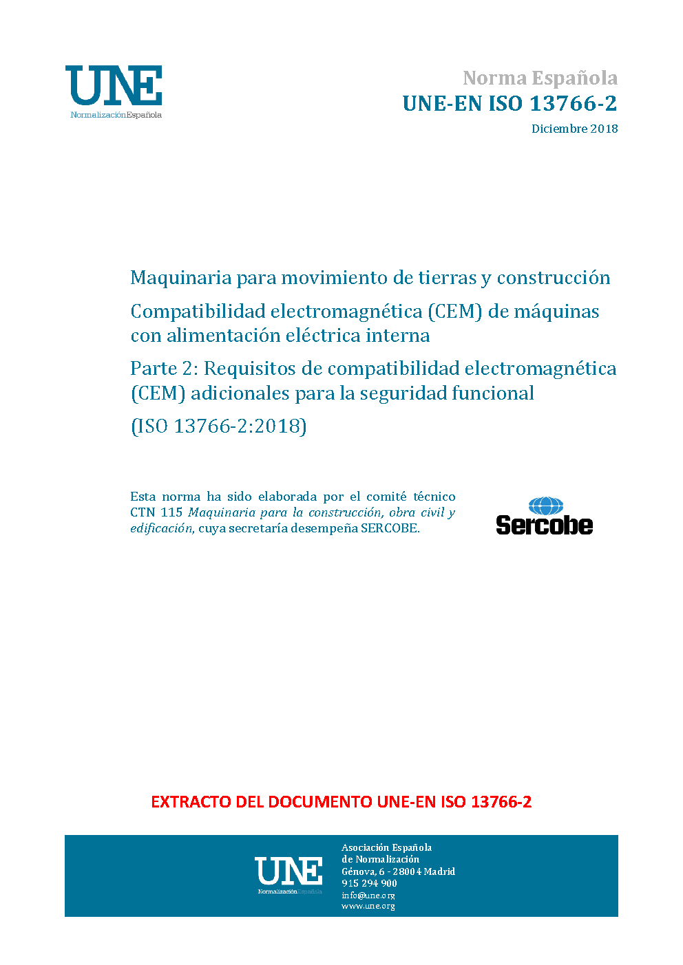 Earth-moving and building construction machinery - Electromagnetic compatibility (EMC) of machines with internal electrical power supply - Part 2: Additional EMC requirements for functional safety (ISO 13766-2:2018)