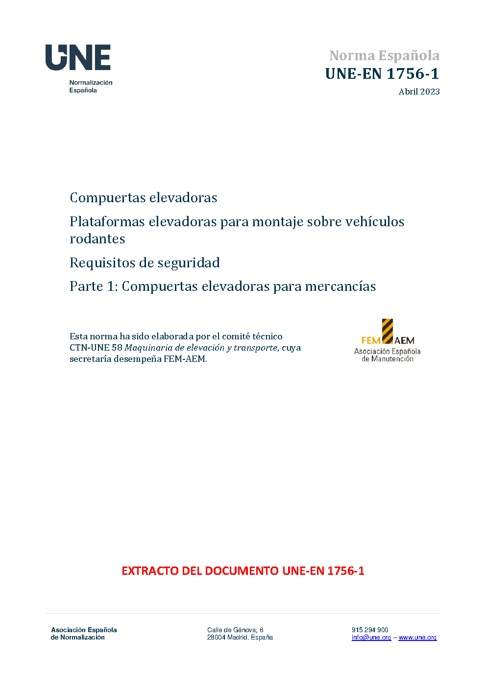 | Publisher | Asociacion Espanola de Normalizacion y Certificacion (AENOR) |
