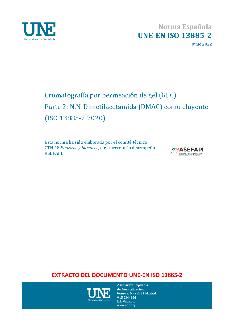 Gel permeation chromatography (GPC) - Part 2: N,N-Dimenthylacetamide (DMAC) as eluent (ISO 13885-2:2020)