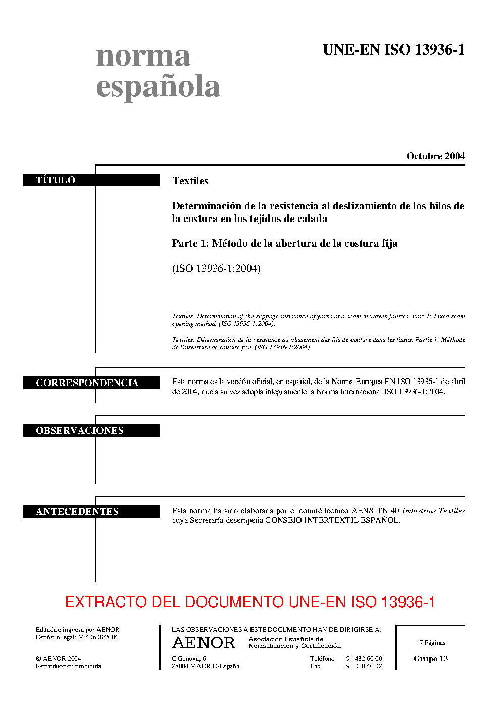 | Publisher | Asociacion Espanola de Normalizacion y Certificacion (AENOR) |