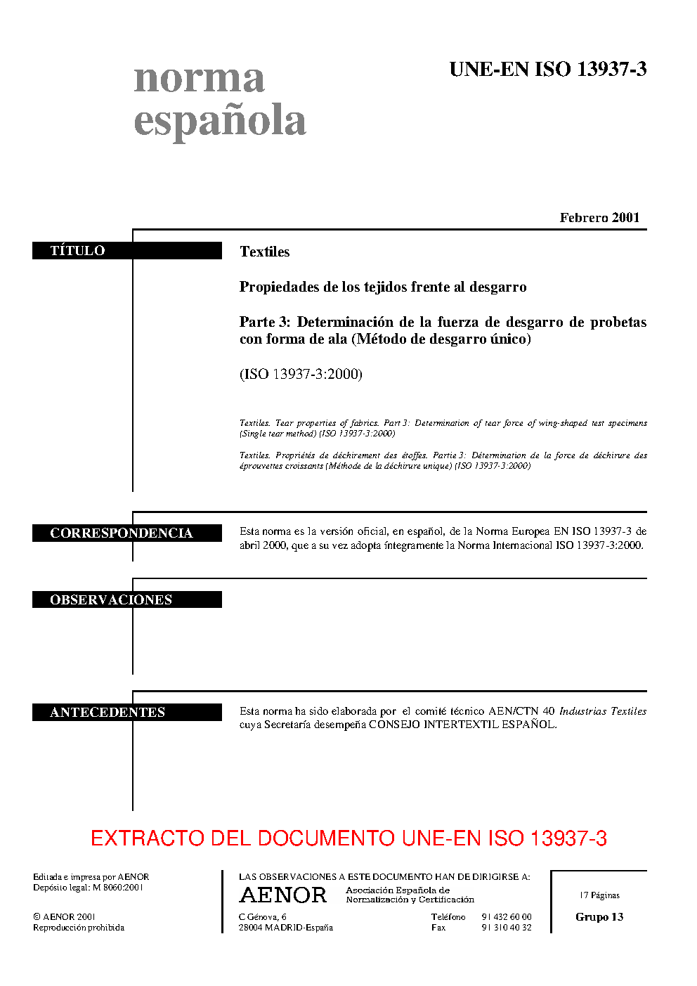 UNE-EN ISO 13937-3:2001 (R2010)