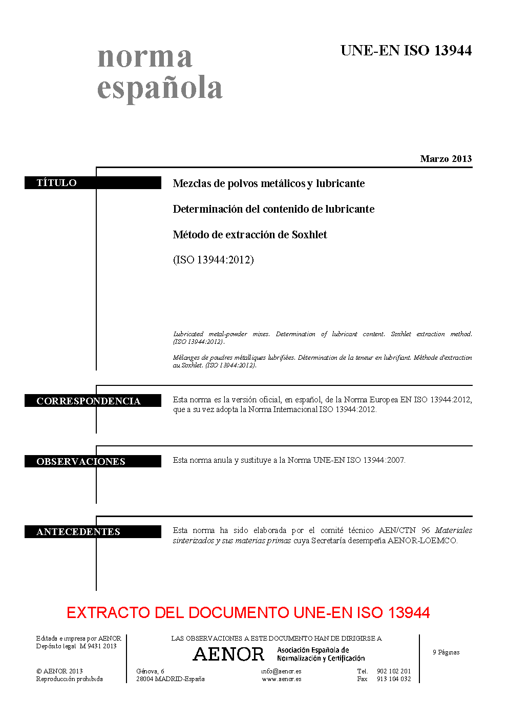 | Publisher | Asociacion Espanola de Normalizacion y Certificacion (AENOR) |