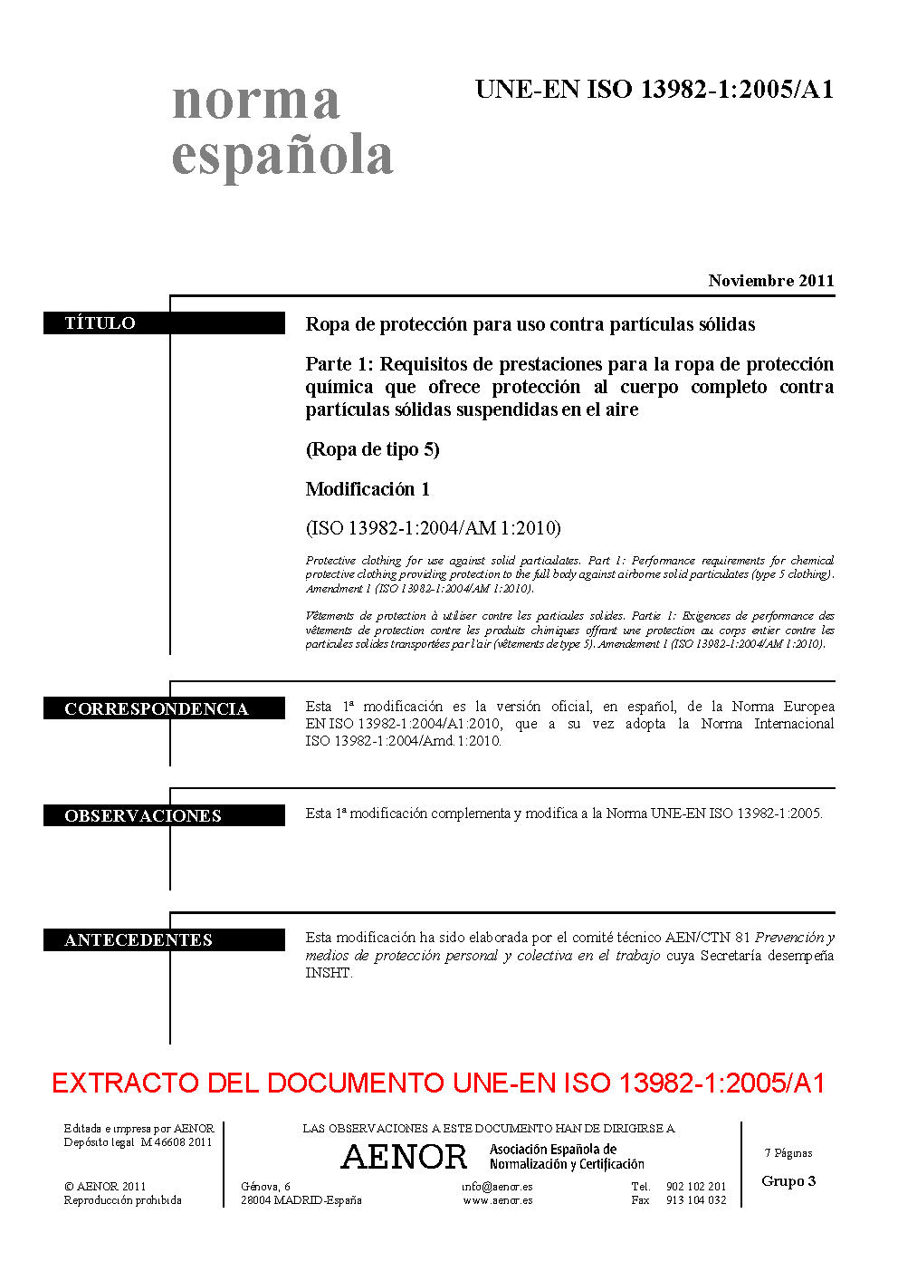 UNE-EN ISO 13982-1:2005/A1:2011