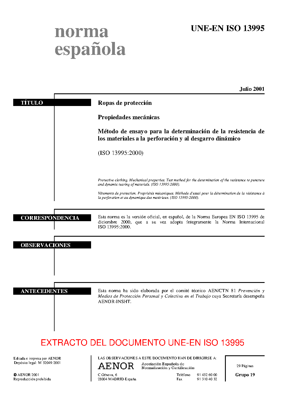 UNE-EN ISO 13995:2001