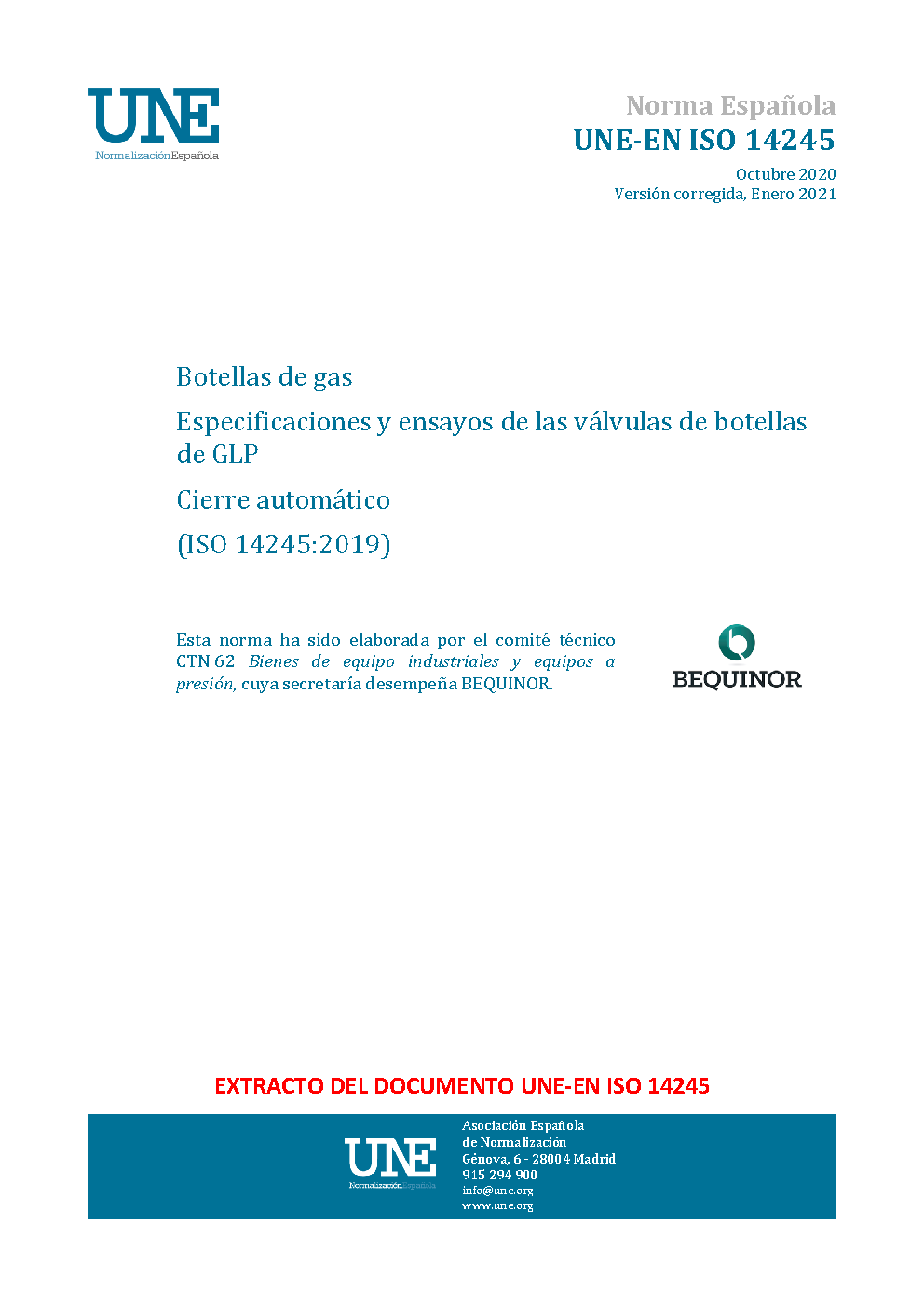 Gas cylinders - Specifications and testing of LPG cylinder valves - Self-closing (ISO 14245:2021)