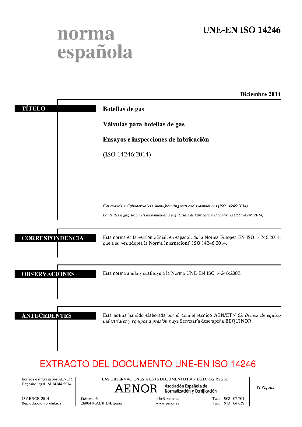 | Publisher | Asociacion Espanola de Normalizacion y Certificacion (AENOR) |