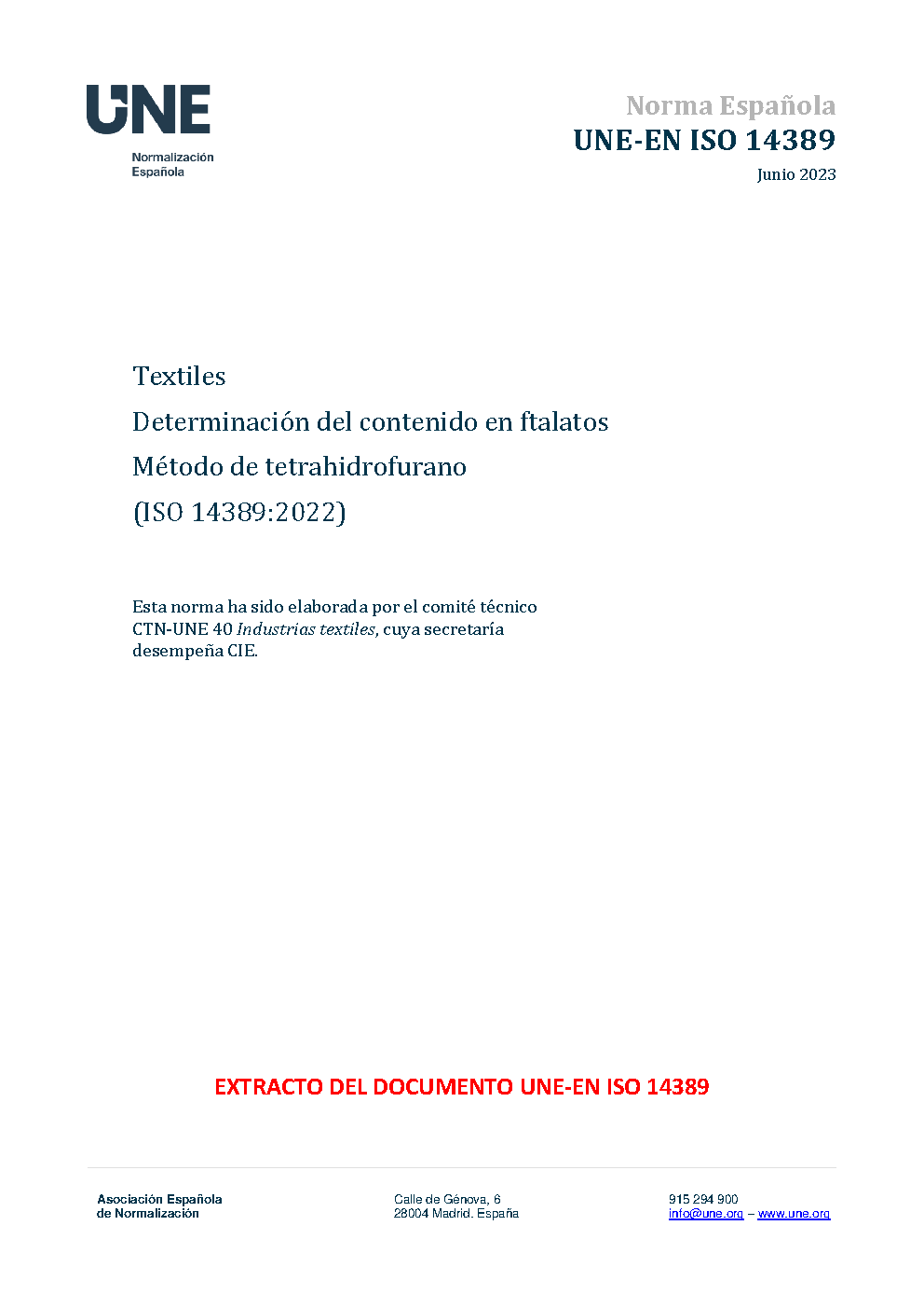Textiles - Determination of the phthalate content - Tetrahydrofuran method (ISO 14389:2014)