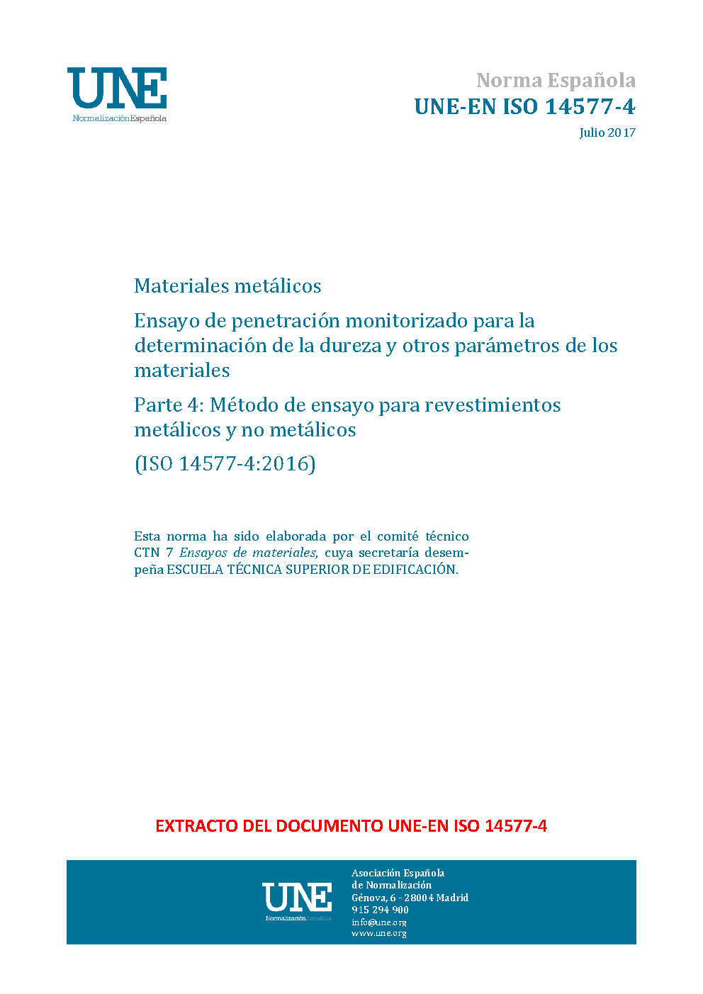 UNE-EN ISO 14577-4:2017