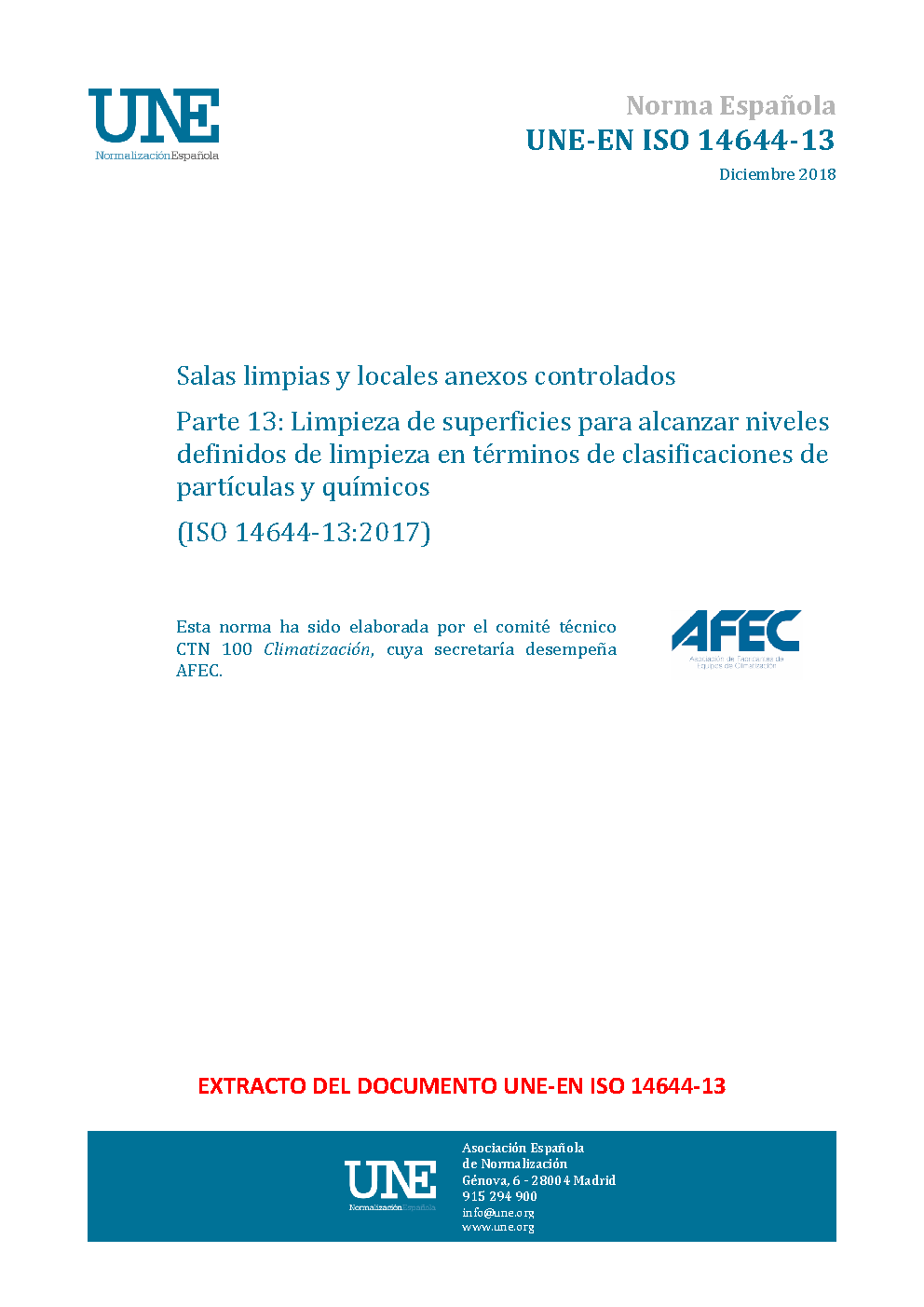 Cleanrooms and associated controlled environments - Part 13: Cleaning of surfaces to achieve defined levels of cleanliness in terms of particle and chemical classifications (ISO 14644-13:2017)