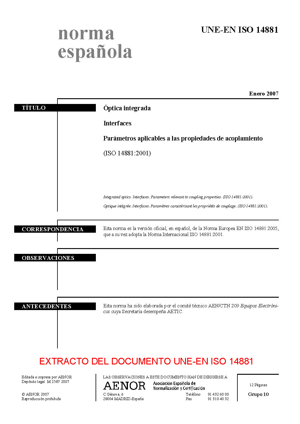 | Publisher | Asociacion Espanola de Normalizacion y Certificacion (AENOR) |
