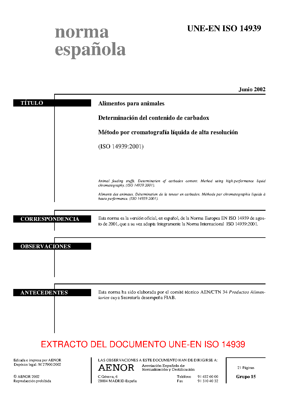 | Publisher | Asociacion Espanola de Normalizacion y Certificacion (AENOR) |