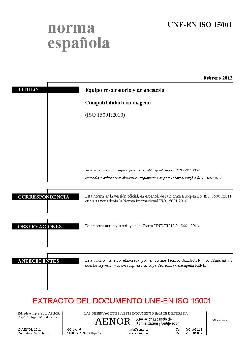 UNE-EN ISO 15001:2012