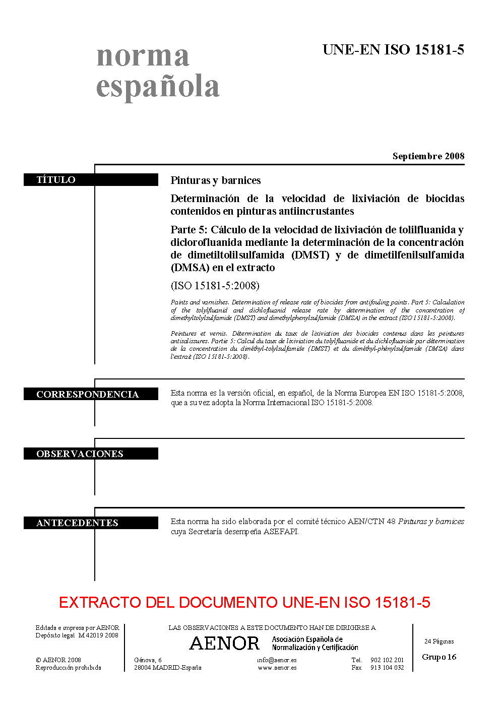 | Publisher | Asociacion Espanola de Normalizacion y Certificacion (AENOR) |
