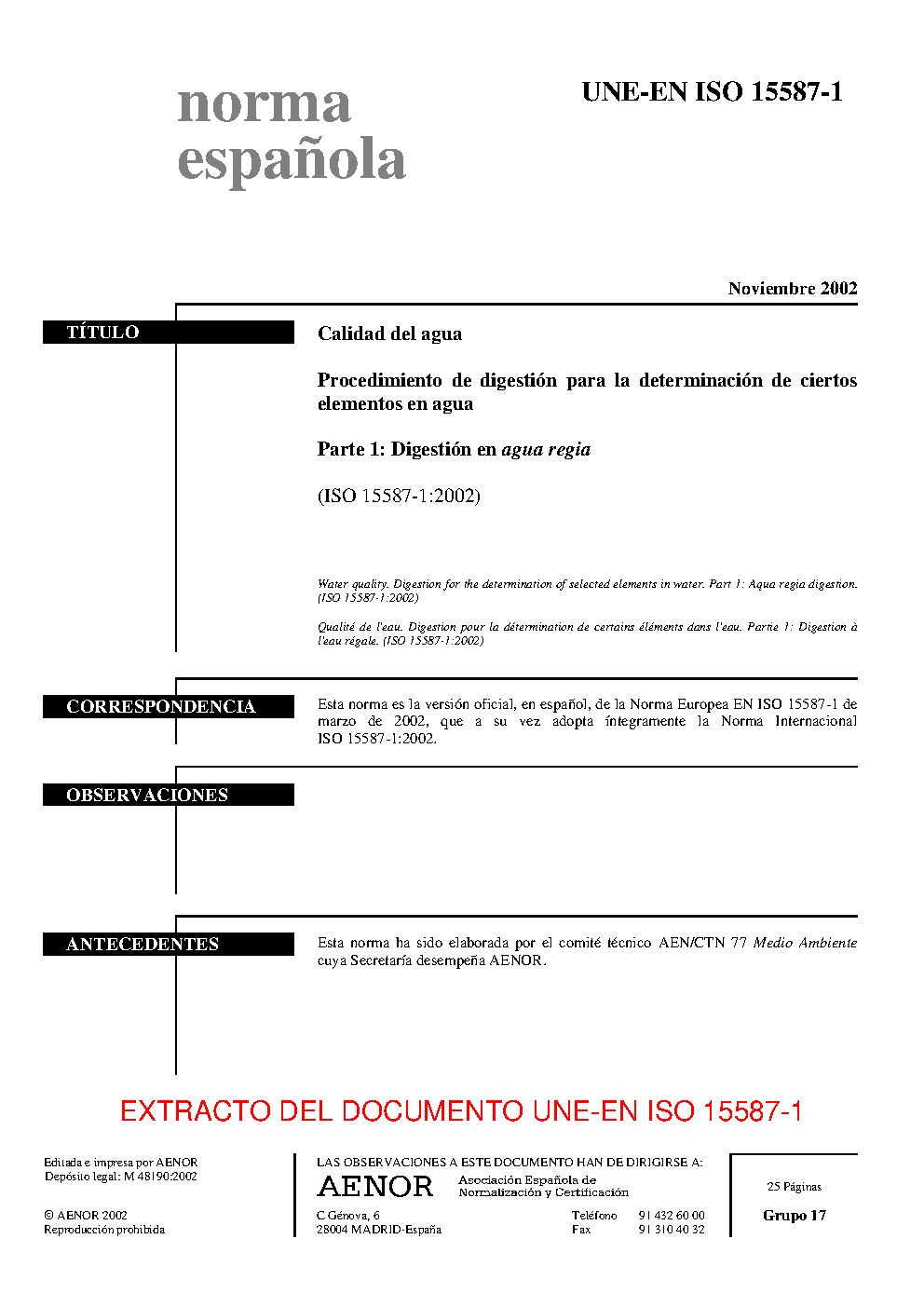 | Publisher | Asociacion Espanola de Normalizacion y Certificacion (AENOR) |