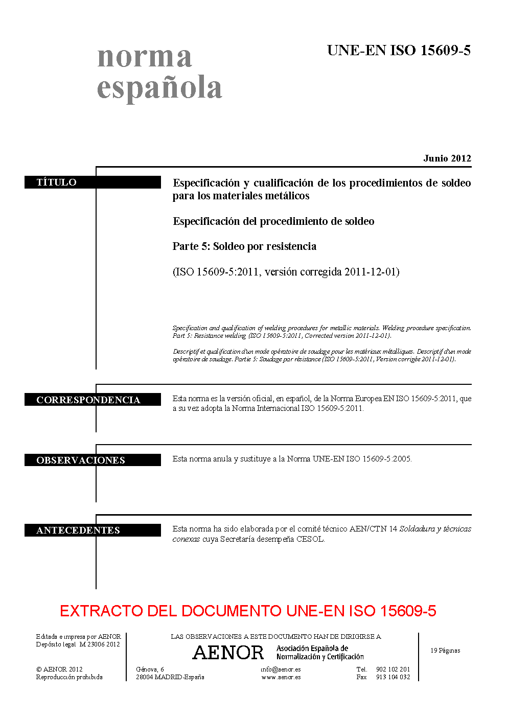 | Publisher | Asociacion Espanola de Normalizacion y Certificacion (AENOR) |