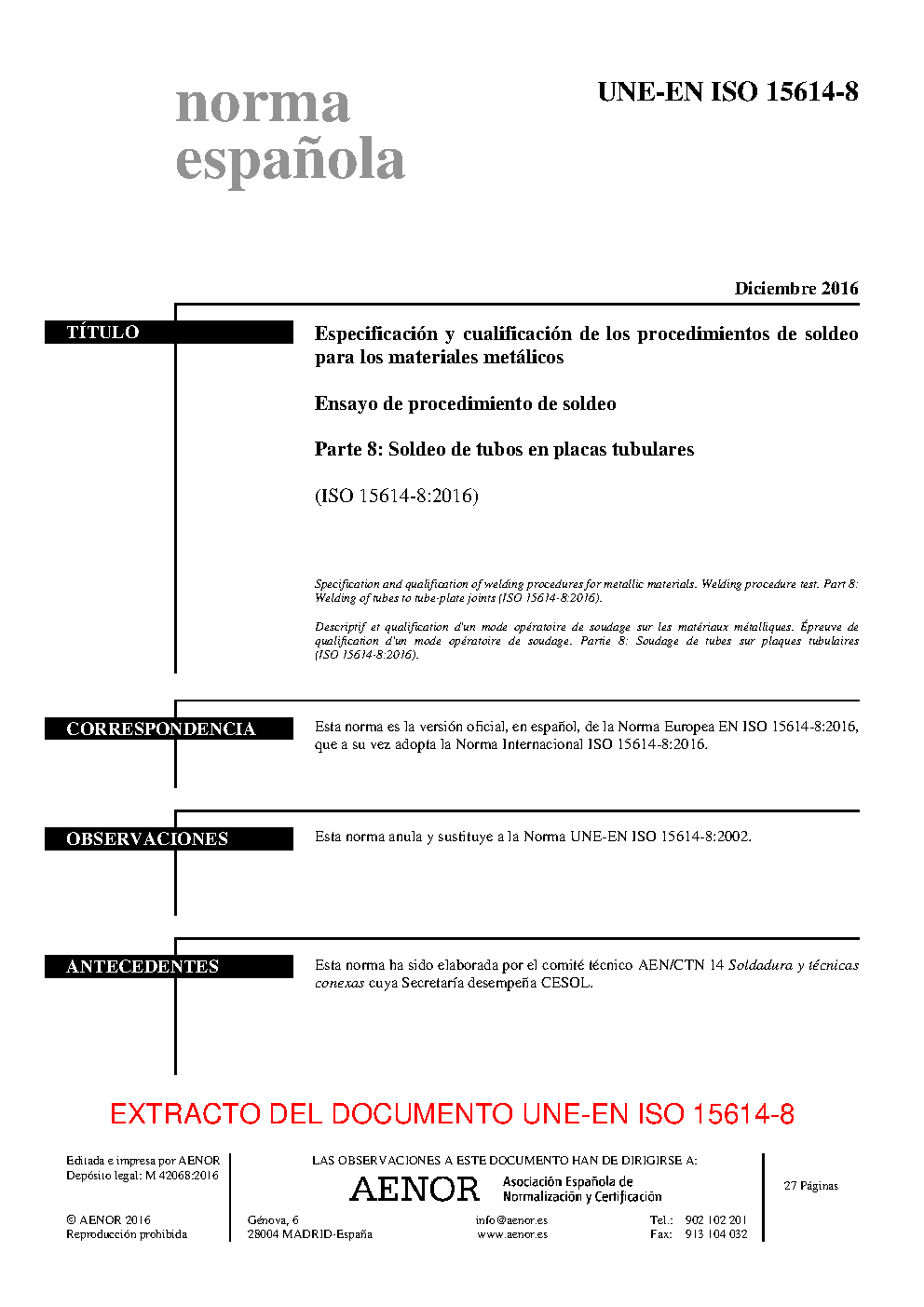 | Publisher | Asociacion Espanola de Normalizacion y Certificacion (AENOR) |