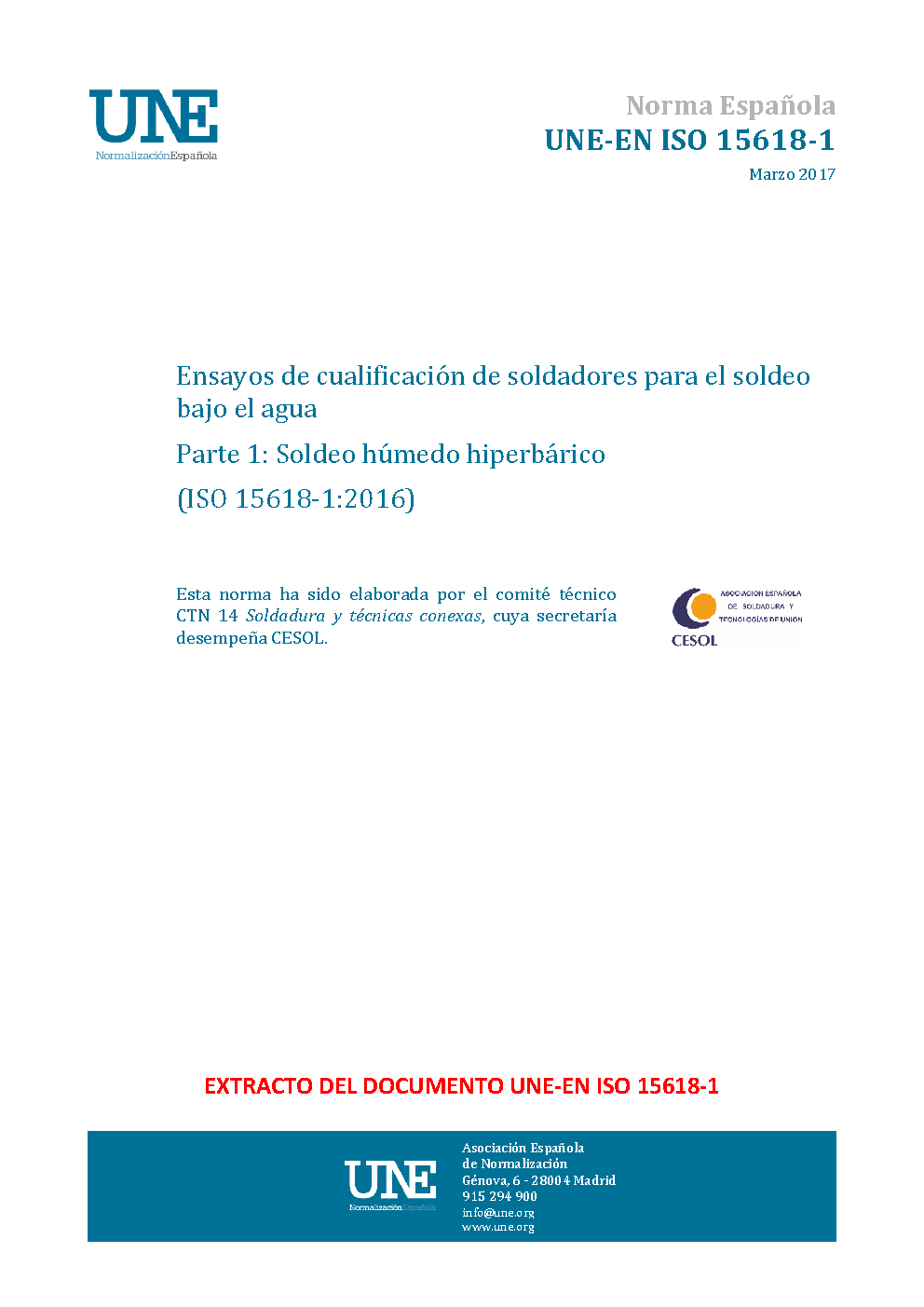 UNE-EN ISO 15618-1:2017