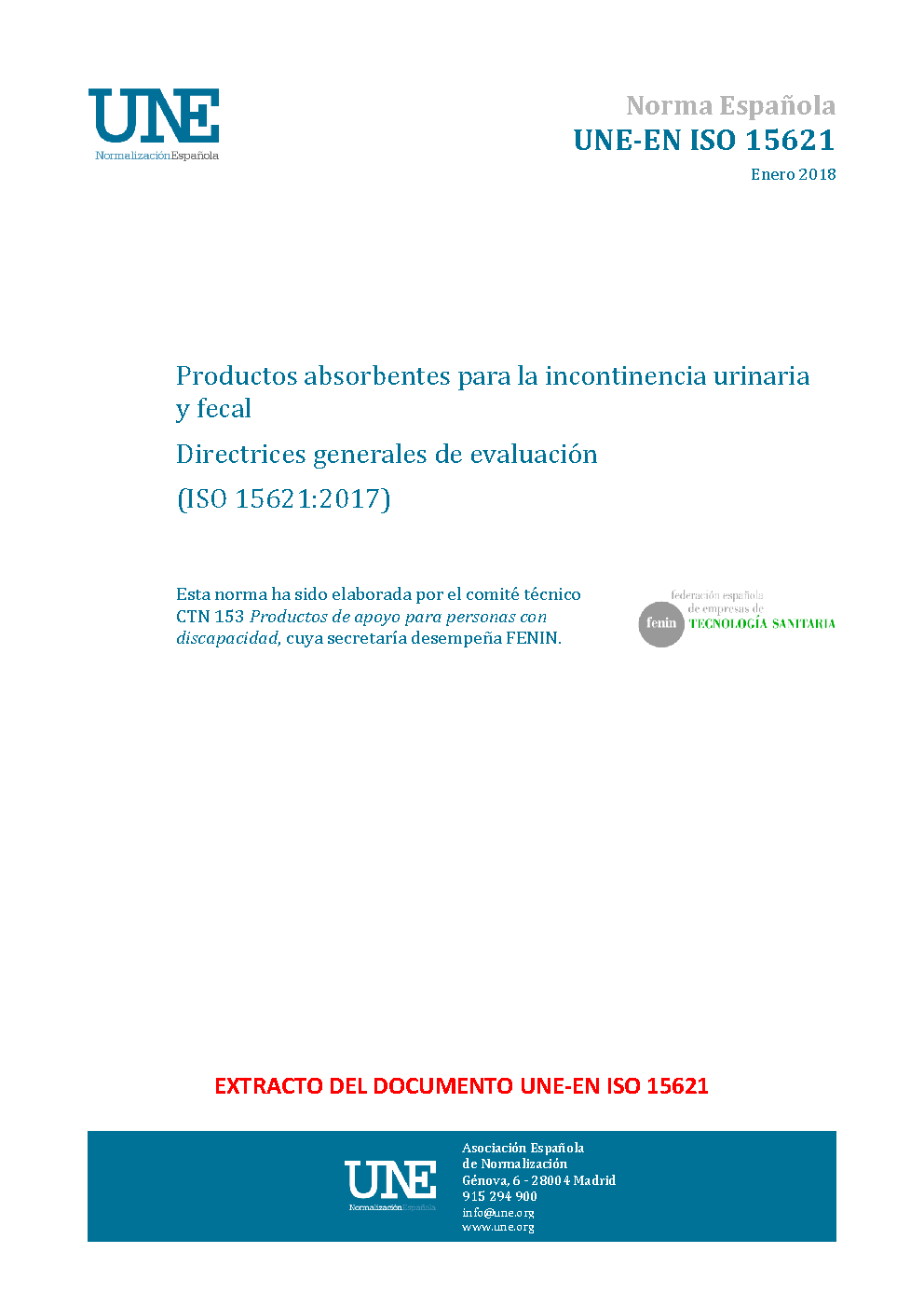 Absorbent incontinence aids for urine and/or faeces - General guidelines on evaluation (ISO 15621:2017)
