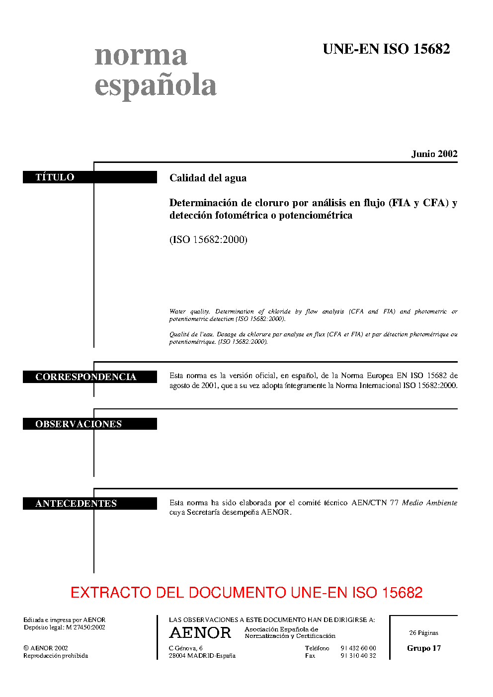 | Publisher | Asociacion Espanola de Normalizacion y Certificacion (AENOR) |