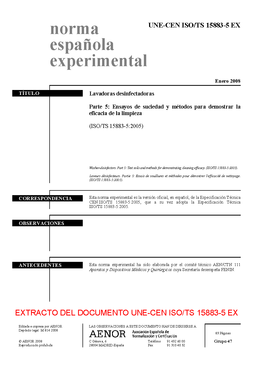 | Publisher | Asociacion Espanola de Normalizacion y Certificacion (AENOR) |