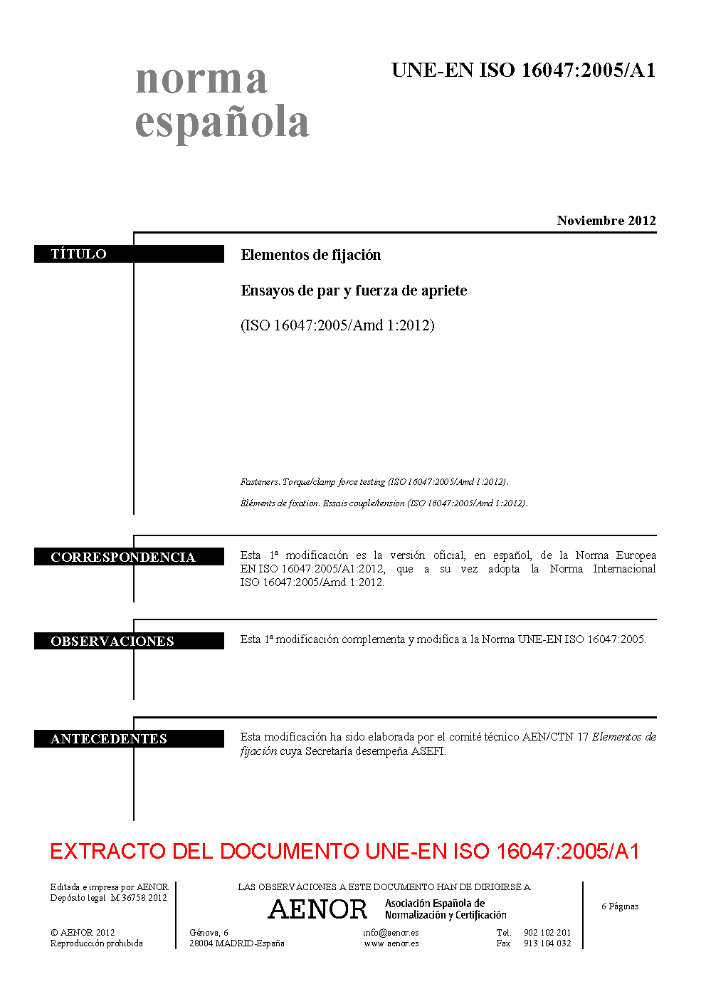 | Publisher | Asociacion Espanola de Normalizacion y Certificacion (AENOR) |