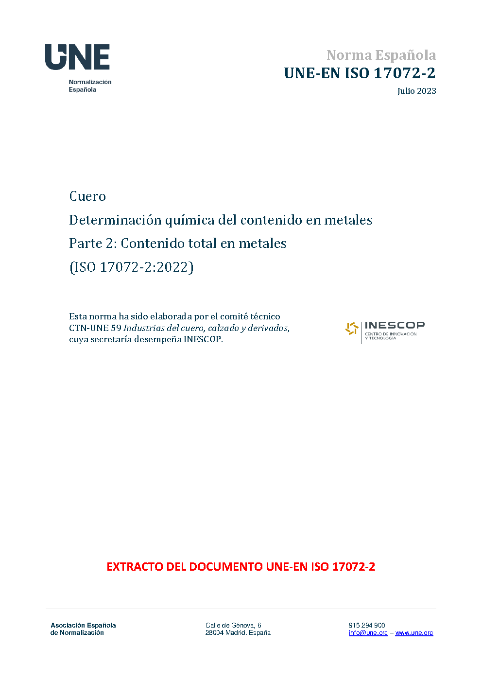 | Publisher | Asociacion Espanola de Normalizacion y Certificacion (AENOR) |