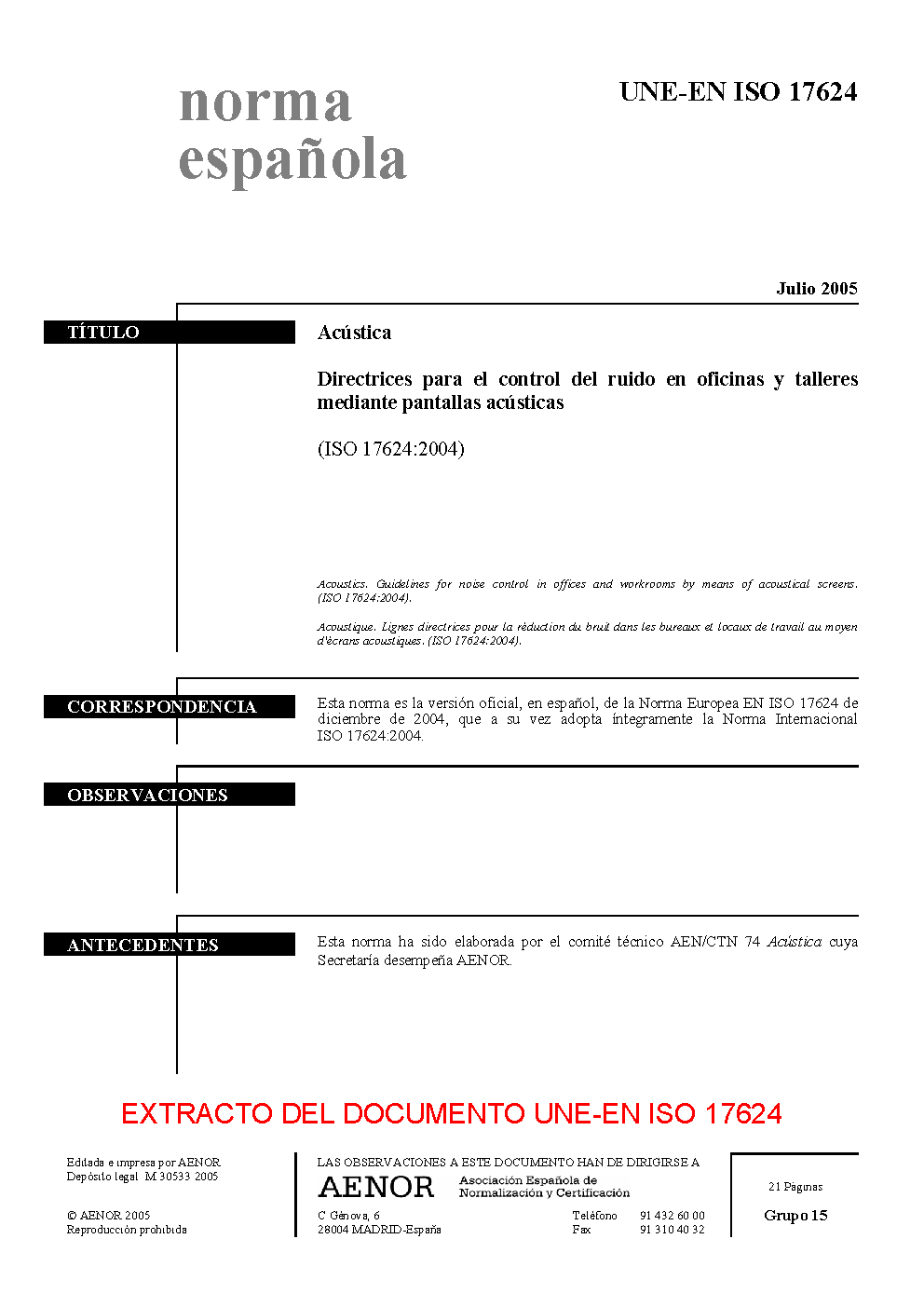 | Publisher | Asociacion Espanola de Normalizacion y Certificacion (AENOR) |