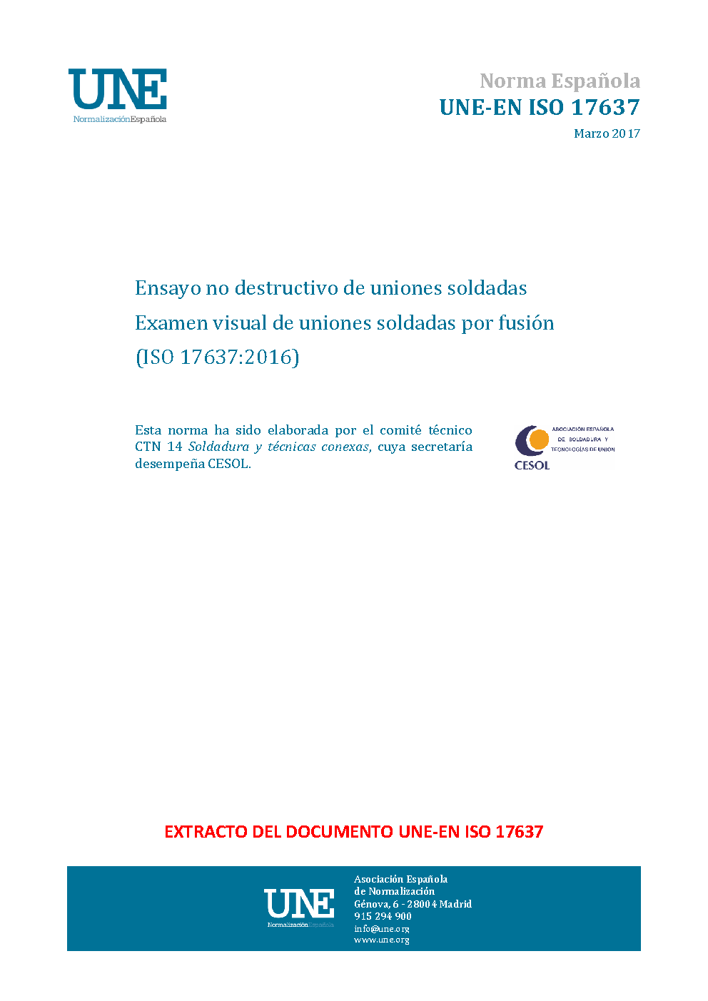 UNE-EN ISO 17637:2017