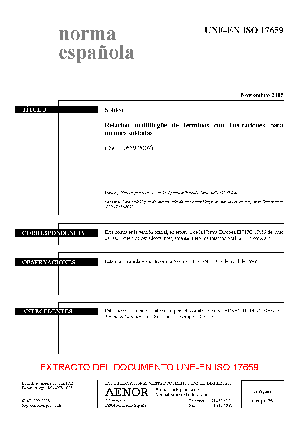 | Publisher | Asociacion Espanola de Normalizacion y Certificacion (AENOR) |