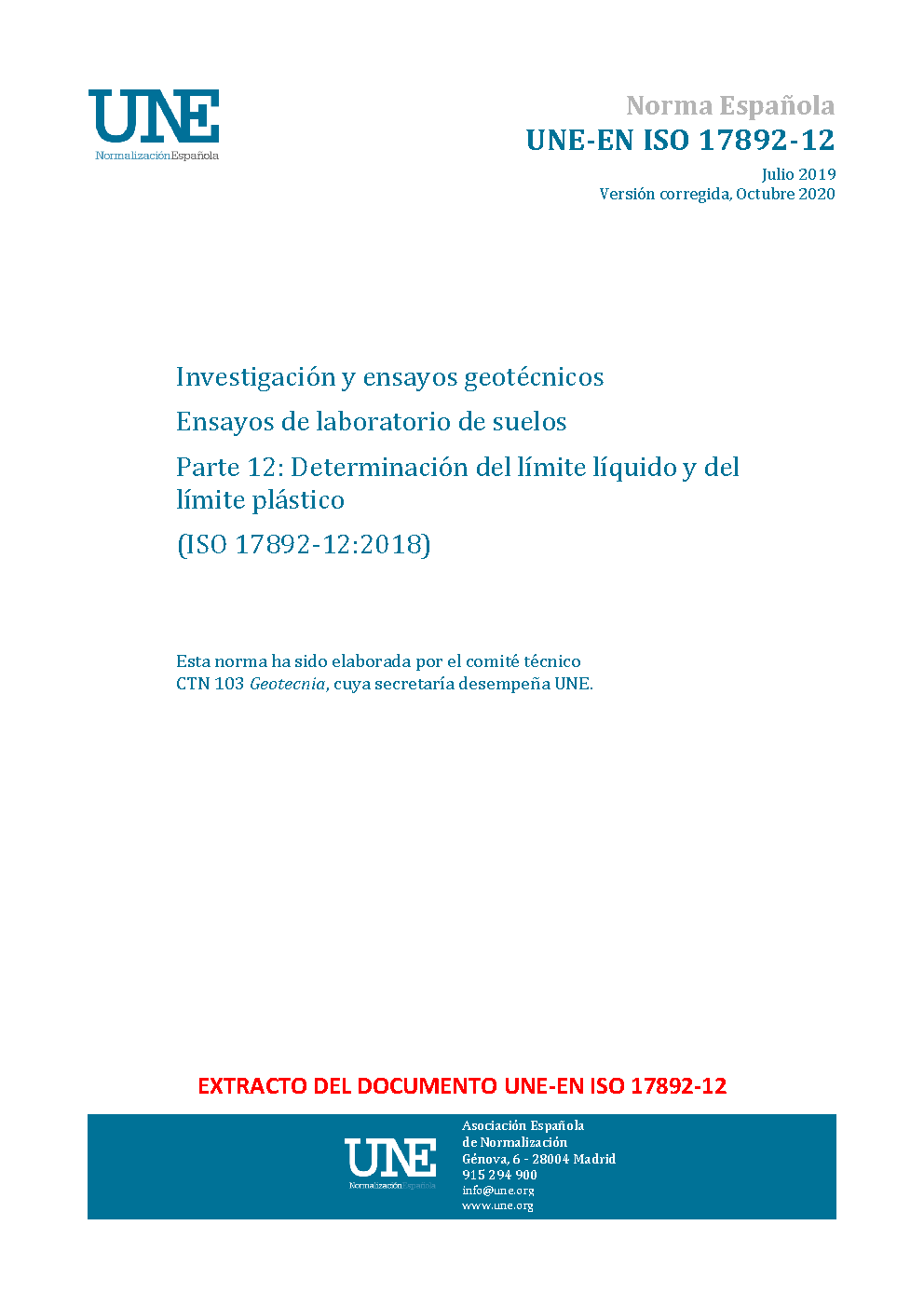 Geotechnical investigation and testing - Laboratory testing of soil - Part 12: Determination of liquid and plastic limits - Amendment 1 (ISO 17892-12:2018/Amd 1:2021)