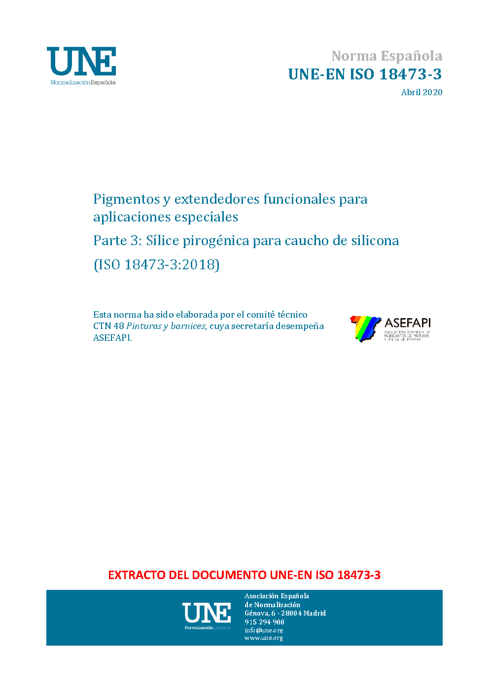 Functional pigments and extenders for special application - Part 3: Fumed silica for silicone rubber application (ISO 18473-3:2018)