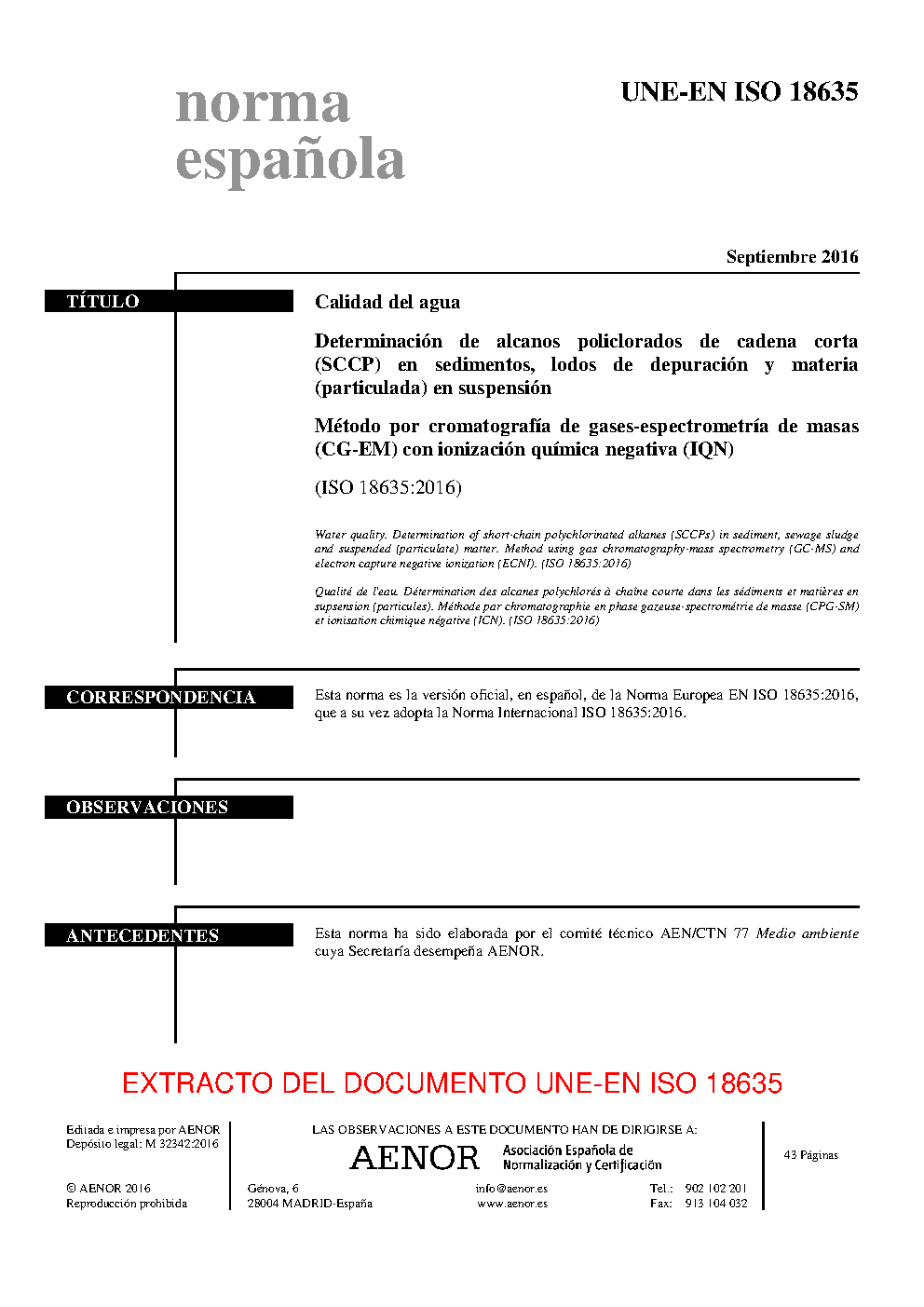 | Publisher | Asociacion Espanola de Normalizacion y Certificacion (AENOR) |