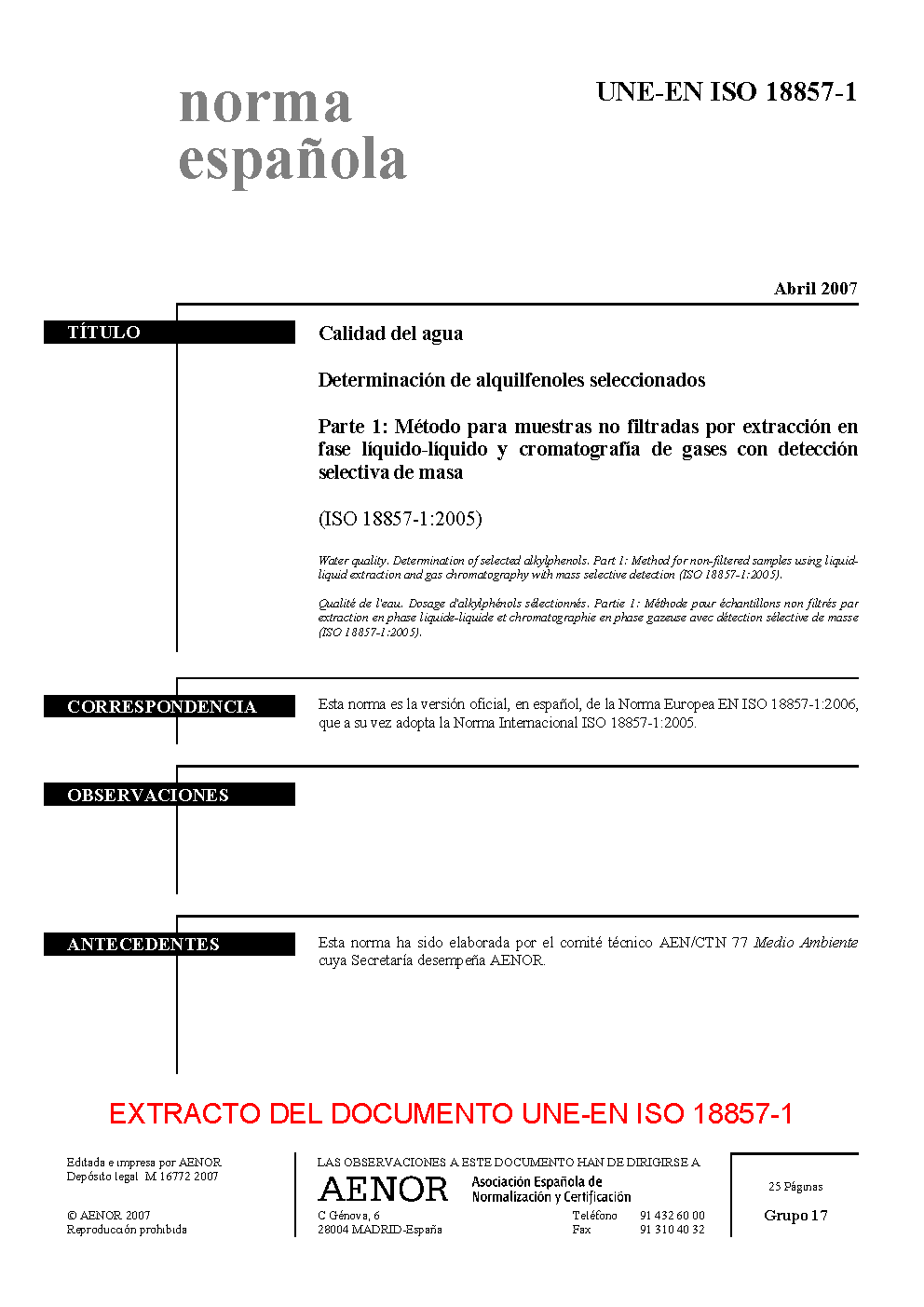 | Publisher | Asociacion Espanola de Normalizacion y Certificacion (AENOR) |