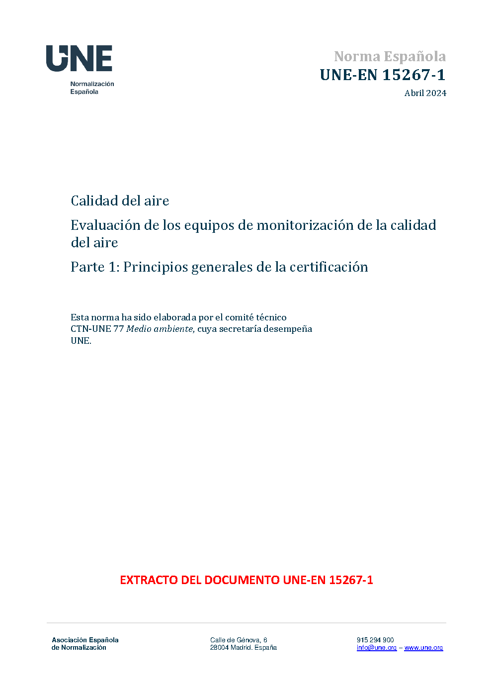 | Publisher | Asociacion Espanola de Normalizacion y Certificacion (AENOR) |