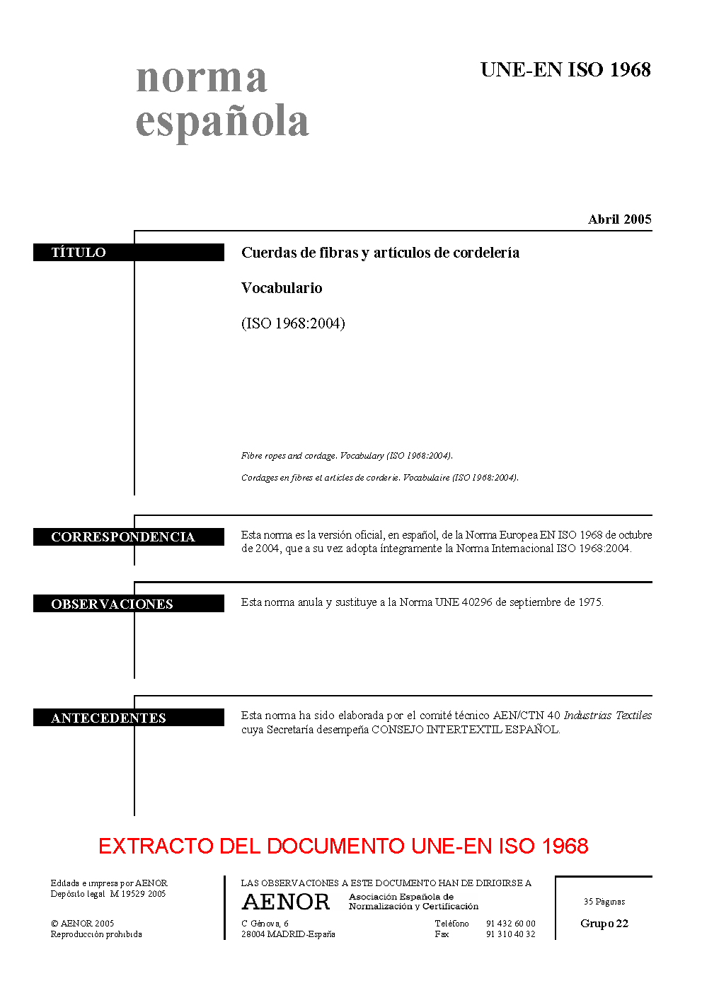 Fibre ropes and cordage - Vocabulary (ISO 1968:2004)