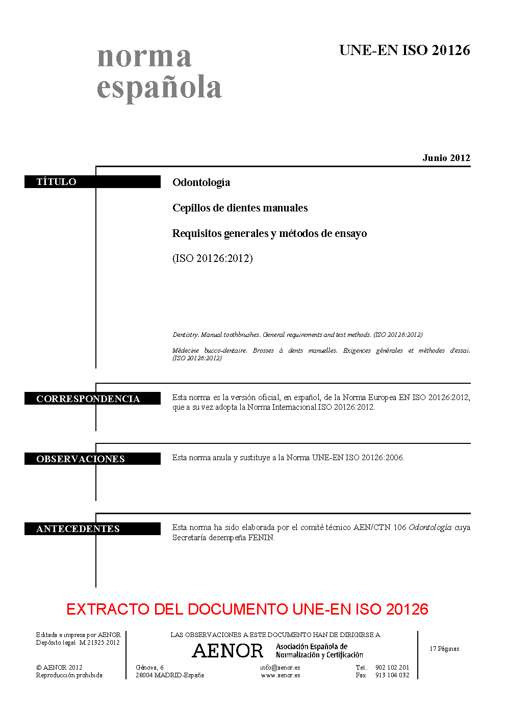 | Publisher | Asociacion Espanola de Normalizacion y Certificacion (AENOR) |
