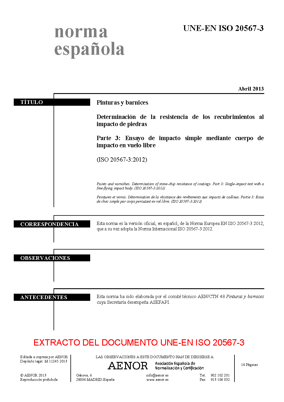 | Publisher | Asociacion Espanola de Normalizacion y Certificacion (AENOR) |