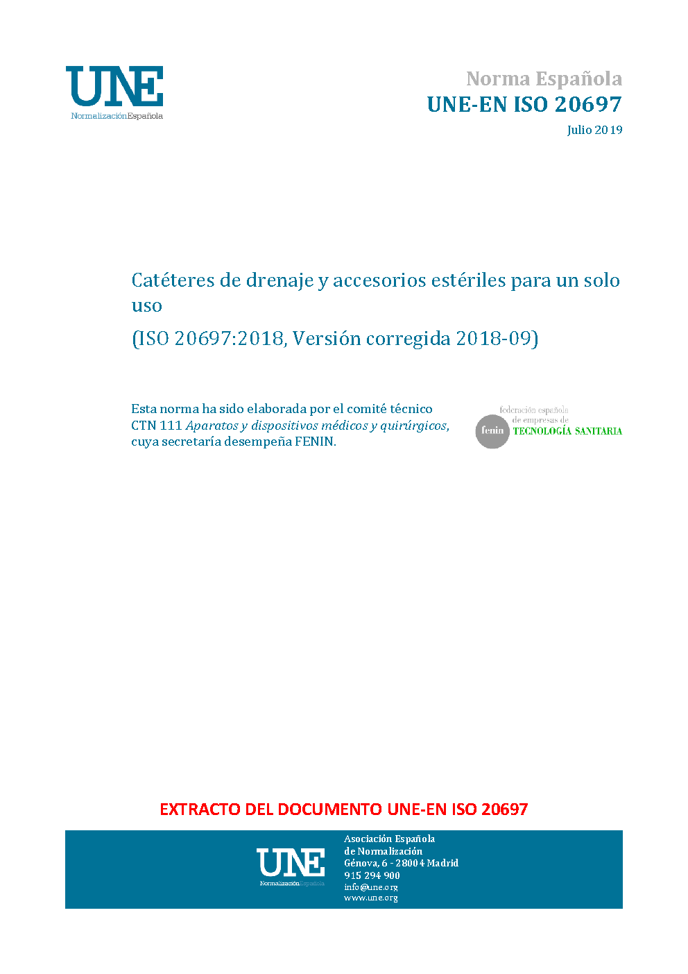 Sterile drainage catheters and accessory devices for single use (ISO 20697:2018, Corrected version 2018-09)
