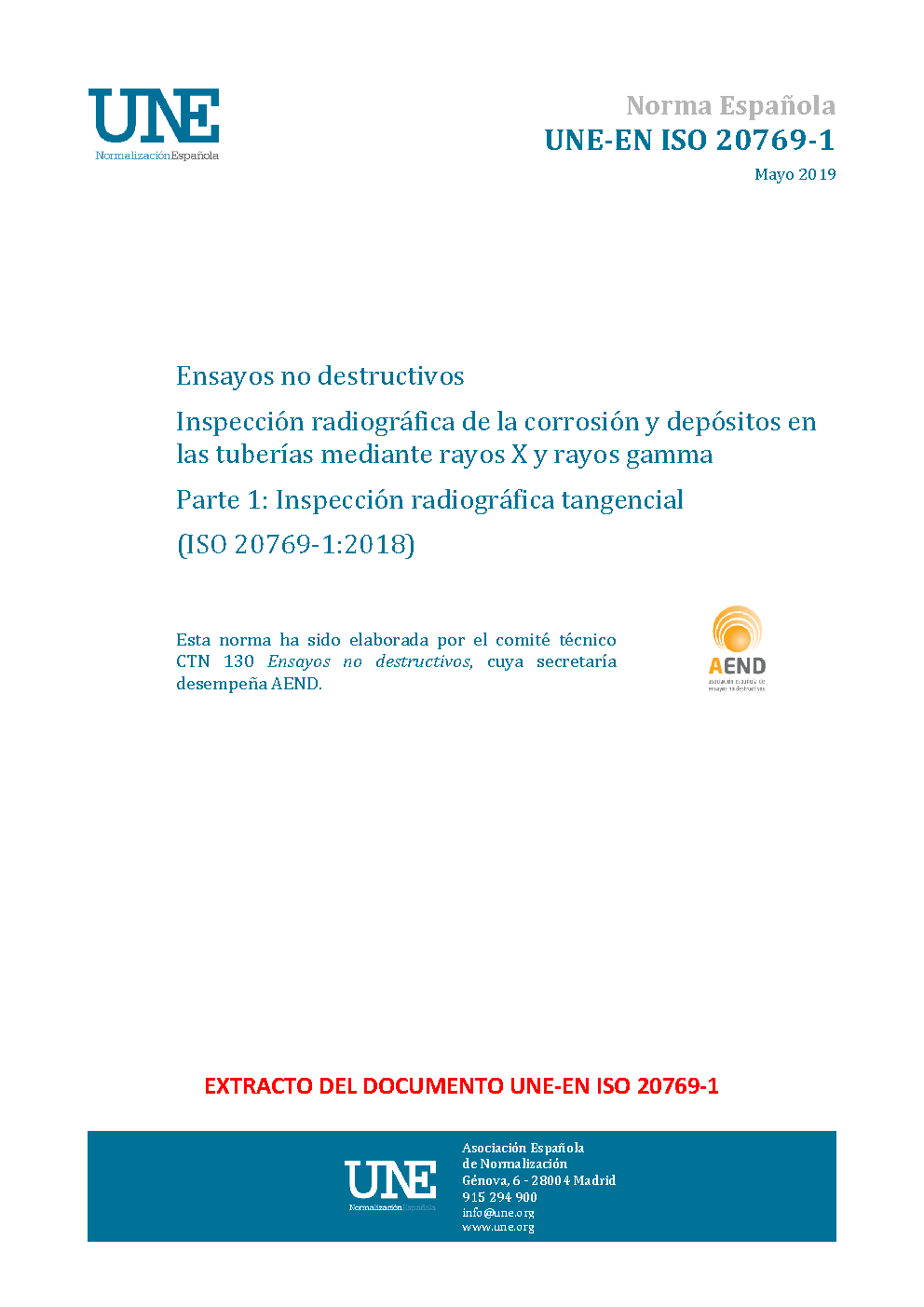Non-destructive testing - Radiographic inspection of corrosion and deposits in pipes by X - and gamma rays - Part 1: Tangential radiographic inspection (ISO 20769-1:2018)