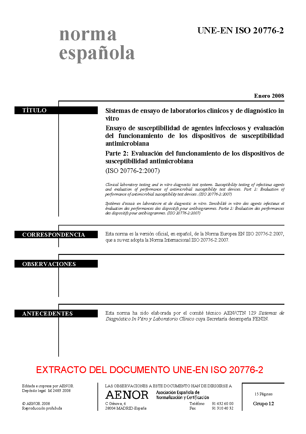 | Publisher | Asociacion Espanola de Normalizacion y Certificacion (AENOR) |